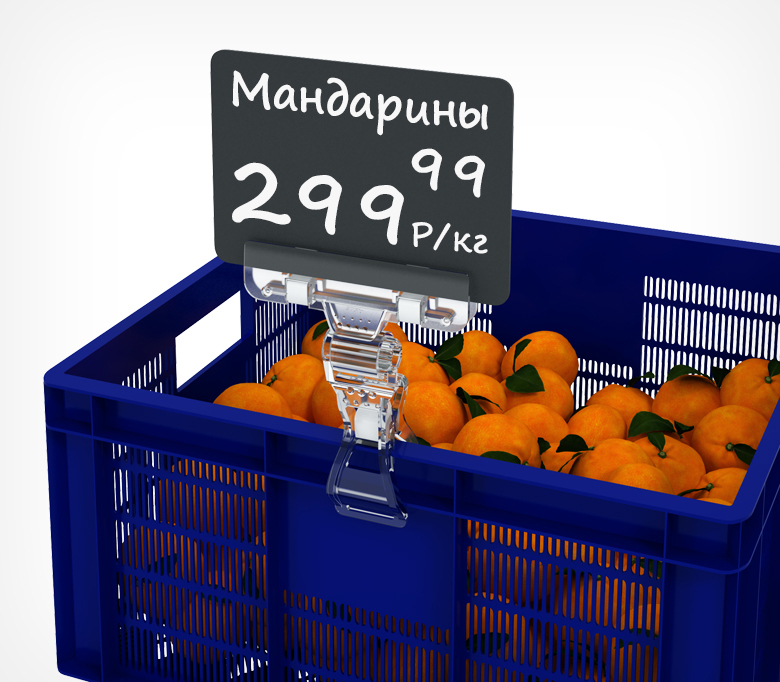 Держатель легко крепится на товар, край корзины или на трубчатое торговое оборудование (макс. диаметр 32 мм.) Ширина захвата - 80 мм., толщина вставки - до 6 мм. Может использоваться с грифельными табличками, бумажными, картонными, вставками из ПВХ и другими информационными носителями.