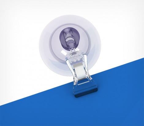 Присоска с прищепкой SC-CLAMP — усиленная силиконовая присоска с двумя контурами крепления с малой прищепкой для табличек толщиной до 10 мм. Диаметр присоски — 46 мм, установка прищепки под углом 0° или 90°. Варианты длины ножки — 0, 50, 100, 150, 200 мм.