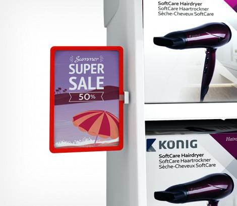 Квадратный магнитный держатель рамки под углом 90° к поверхности и паралельно поверхности, позволяет крепить пластиковые рамки различных форматов на любых металлических поверхностях. Рекомендуется использовать по 2 магнитных держателя