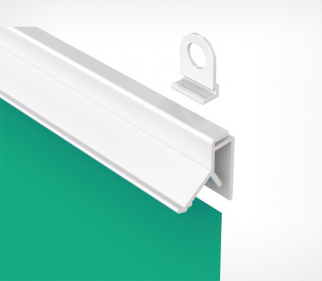 Пластиковый клик-профиль для подвешивания бумажных плакатов, тонких баннеров, плакатов на ткани. Используется с крючками CLICKER (2 крючка на 1 метр профиля). Внешние размеры ( в-т) - 20 x 6 мм., максимальная толщина вставки - 0,7мм