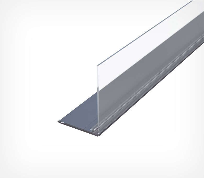 Применяется для организации на полке товаров крупного размера. Ограничитель предотвращает выпадание товара вперед, высота ограничителя 80 мм.