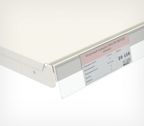 Широкий универсальный ценникодержатель DBR высотой 60 мм применяется для размещения ценников большего размера чем стандартные. Имеет нанесенный двухсторонний скотч для монтажа.